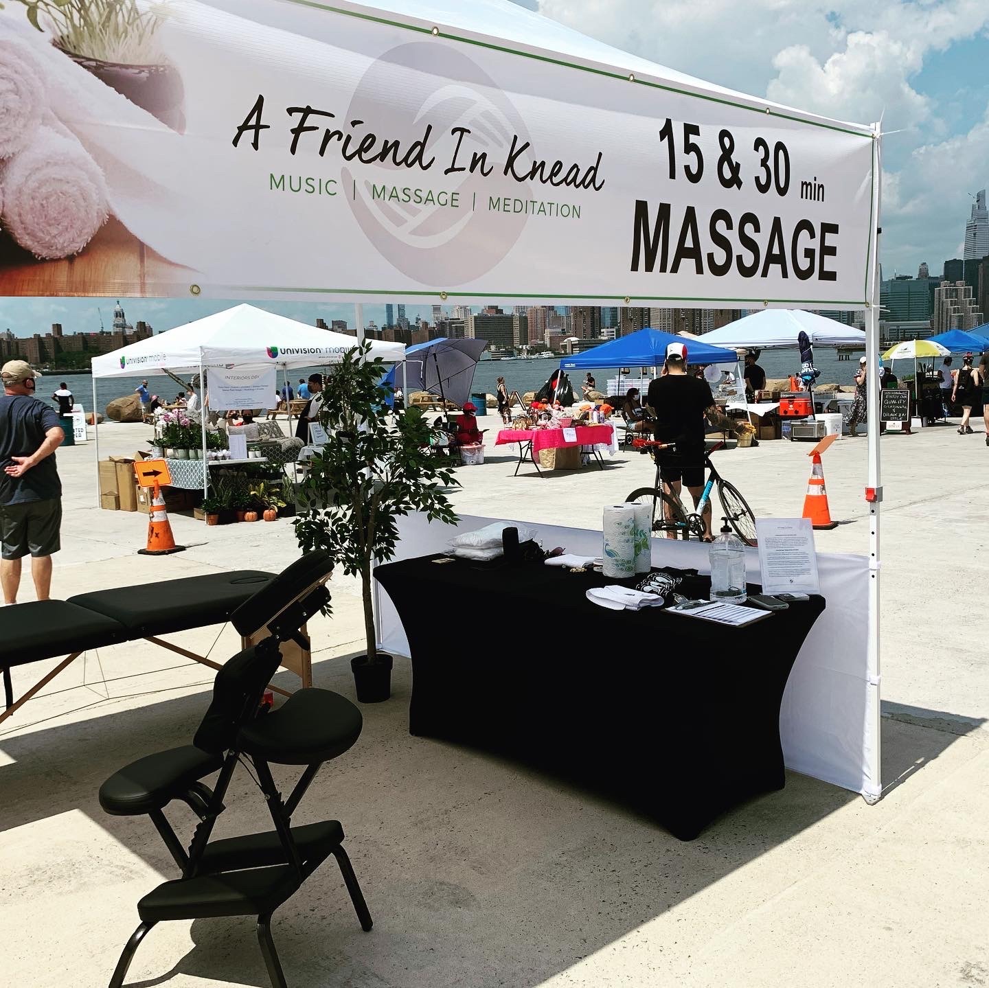 Choose a peaceful spot like your office, conference room, living room, or any private space. A Friend In Knead will transform it into a calm, spa-like atmosphere. We provide everything, from massage tables and linens to relaxing music, so you don’t have to lift a finger. All we need is enough room and a few quiet moments.